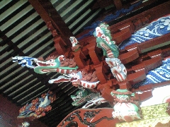 星宮神社 渡良瀬川の土手にあがる手前の道を左折すると、 星宮神社があります。 幕軍戦死者の遺体を河原から移設した場所です。 社殿の裏手あたりに戦死塚があったようですが、 いまはその名残は見つけられませんでした。 足利市文化財一斉公開のほか、祭礼の午後に内部の本殿が公開されます。たまたま立ち寄って拝見しました。(2017.4/17) New 本殿は、日光東照宮を手がけた彫り物大工の流れを汲むひとが彫刻・彩色したそうです。 もともと虚空蔵信仰に由来しているそうです。 従って社殿にうなぎの彫刻。 |