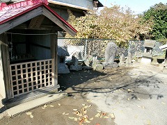 神社本殿の左後ろの富士浅間大神の石碑がある築山の下に