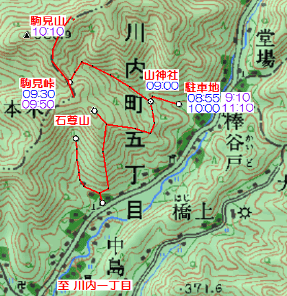 桐生市川内町の駒見山は、以前笹久保山から桐生市自然観察の森を歩く途中、 と前回、駒見峠まで行ってみたのですが、 |