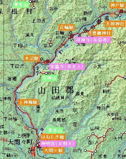 ![]() 渡良瀬川踏破シリーズ第2弾 草木ダム下の神戸(ごうど)から大間々までを紹介します。 今回は、クルマでわたらせ渓谷鉄道の大間々駅まで行き、鉄道に乗り継ぎ、前回のゴールである神戸駅をスタートとします。距離18km、標高差500m。歩行時間は、休憩を含めて、7:45〜13:30の5時間45分でした。(取材日:2007.11/26 月) >> 今回歩いた渡良瀬川の地図は、こちら。 わたらせ渓谷鉄道は、前回と同時刻の列車に大間々で7:02乗車します。従って、前回、神戸駅で列車に乗車した時刻7:43に歩きはじめます。 大間々駅は駐車が有料となったため、はねたき橋の駐車場にクルマを停めます。大間々駅からは、数人の乗客のみ。 途中の花輪駅から、前回の神戸駅で入れ違いになった中学生の集団と一緒になります。中野駅からも数人の中学生が乗車しました。 前回より、紅葉は鮮やかになっているようです。 今回も途中、わたらせ渓谷鉄道沿線の「銅(あかがね)七福神」を参拝してゆきます。 >> 銅七福神の地図は、こちら。 2008. 3/22追加 メルマガ「わたらせからの風」では、メルマガのみの連載「かぜの独り言」を掲載しています。今回の渡良瀬川踏破シリーズ全5回の掲載内容を各々のページに採録しましたので、もう一度、各ページの「渡良瀬川」をご覧ください。 また、ぜひメルマガもご購読お願いいたします。 >> メルマガ登録は、こちら。 2009. 6/ 3追加 2009.5/30テレビ朝日ドラマ「鉄道捜査官10」では、本地域がロケ地として使われました。ロケ地となった場所に説明を追加しました。 |